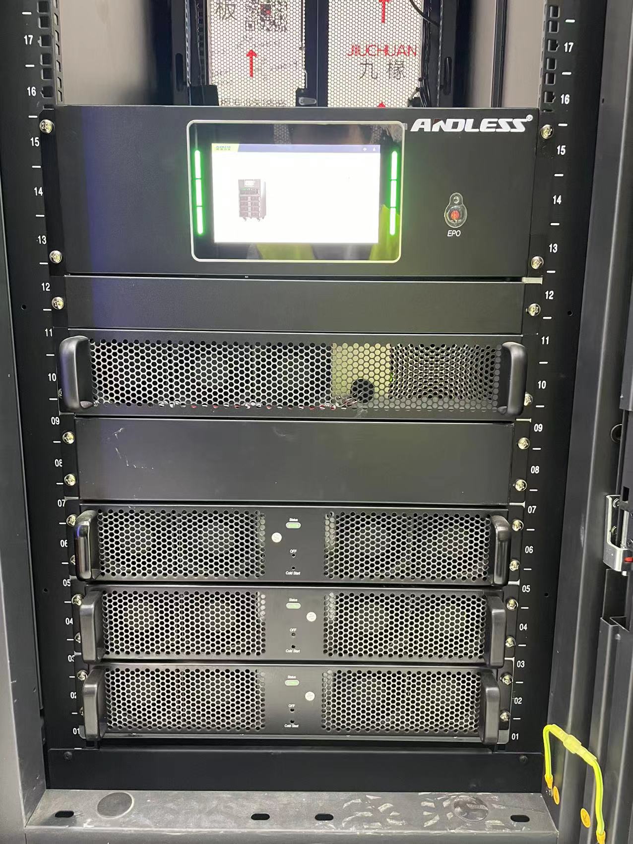 我司近期為蕪湖海立新能源技術有限公司提供安德力士品牌雙排微模塊機房一套(含UPS不間斷電源、機柜、精密配電、空氣調節、動力環境監控等系統設備),現已調試完成。