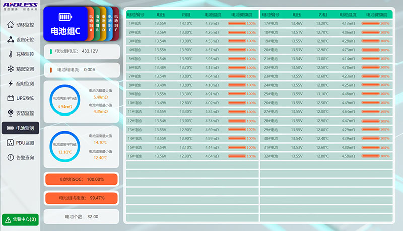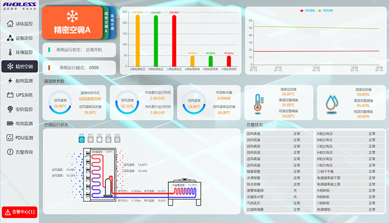 我廠為本項目提供了1套雙排微模塊冷通道,通道包含:1臺GLG/JM型精密配電柜、13臺GLP型服務器機柜、2臺GLKI026型列間空調,以及配套通道組件和配套動環監測系統。UPS不間斷電源系統包含:1臺GLS-60KVA、1臺GLA-40KVA型UPS主機、192節6-GFM-100型蓄電池、配套電池柜,以及1套GLK121型基站空調,所有設備現已供貨完成。