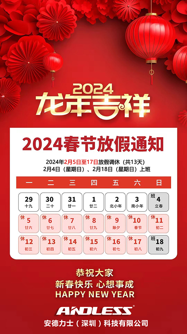 新春佳節即將到來,我公司依據法定節假日相關規定,結合公司實際情況,現將2024年春節放假安排如下: