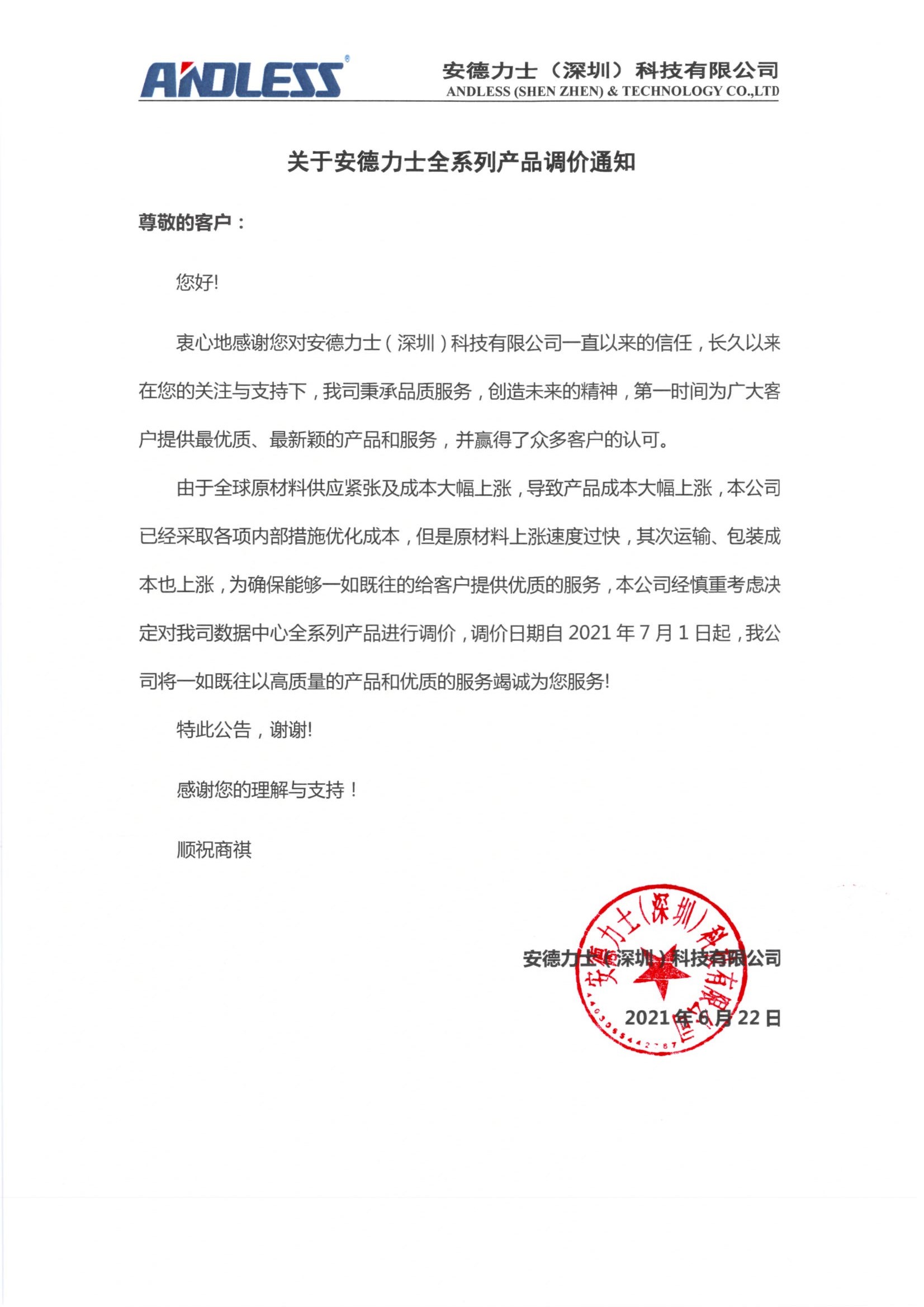 調價通知
