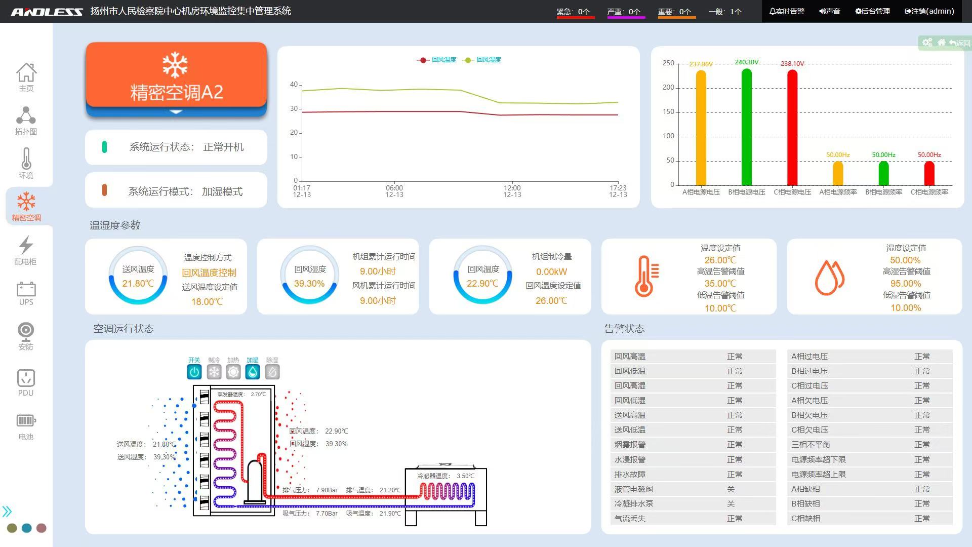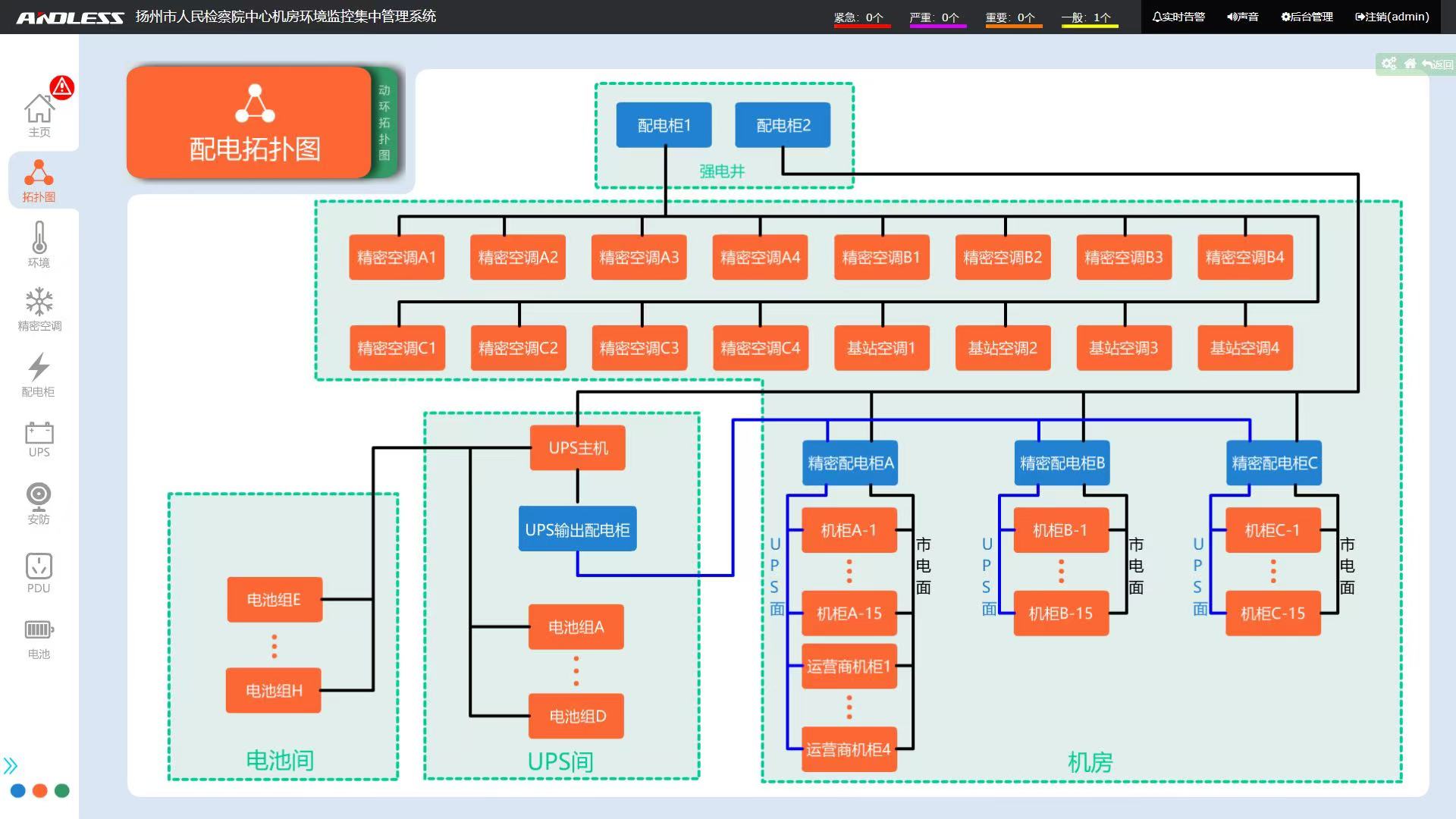 概述:安德力士機房動力環(huán)境集中監(jiān)控管理系統(tǒng),系統(tǒng)人機界面設(shè)計友好,塊化設(shè)計,安裝使用簡單,提供北向接口,支持對接其他系統(tǒng)軟件平臺。以形象直觀的圖形界面方式實時顯示所轄范圍內(nèi)各對象的工作狀態(tài)和運行參數(shù);子系統(tǒng)具備兼容性,支持眾多廠家的智能設(shè)備;具備擴(kuò)展性,提供二次開發(fā)接口,方便第三方軟件系統(tǒng)集成。具有報表管理功能,可以通過EXCEL表格對溫濕度記錄以及各種報警數(shù)據(jù)進(jìn)行統(tǒng)計。