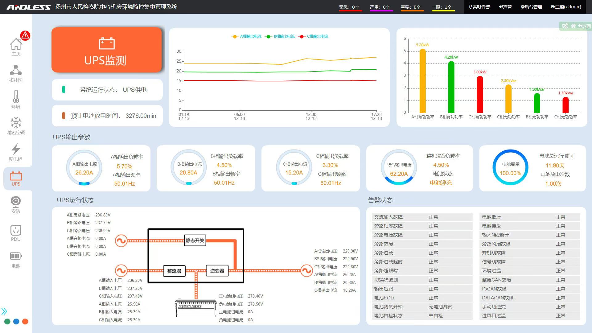 具有遠(yuǎn)程自測、關(guān)機及重啟UPS功能,能夠定時任務(wù)進(jìn)行此類操作,并具有相關(guān)的記錄報表。